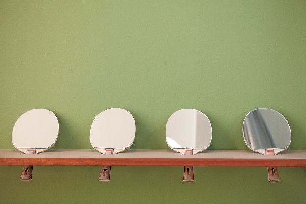 為了打破傳統眼鏡店冰冷刻板的印象,Klar店內展示空間打造成家中客廳的形式,並選用丹麥古董家具,例如扶手椅為來自丹麥巨匠設計師Grete Jalk 1960年代的作品,整體環境給人舒適的氛圍。店內一角的架上還可以發現由桌球拍改製的鏡子,令人會心一笑的可愛設計也是Klar拉近與客人距離的巧思。