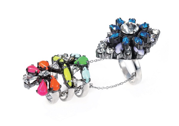 最新2013春夏系列中,Shourouk Rhaiem以非洲部落的蠟染服飾與美國好萊塢黃金時代為創作靈感,熱情奔放的異域風情展現在各種奪目螢光色彩上,好萊塢式奢華則在誇張配飾上發揮的淋漓盡致,當中更處處可看到品牌謬斯女神Elizabeth Taylor的華貴身影。除了項鍊等配飾,系列包款也是讓人驚艷的點睛之品,巧妙混搭寶石與PVC果凍包身,無論搭配炫彩螢光或天然玳瑁色,都是一番精彩的呈現!