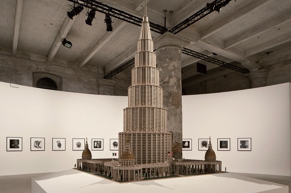 本屆雙年展的策展人Massimiliano Gioni 將主展場的展覽命名為「百科宮殿」(The Encyclopedic Palace)。這個概念的靈感來源,是來自於一位生活在19 世紀末20 世紀初期的義籍美國藝術家Marino Auriti (1891– 1980) 建造世界百科宮殿的夢想。Marino Auriti 計畫建造一個大型博物館,將所有人類偉大的發明都收進這座大型博物館中做永久典藏,以標記每一個人類的重要進程。Marino Auriti 在二十世紀的中期為這個夢想中的博物館建造了一大型的外觀模型,但是這個美夢終究停留在模型的階段,沒有進一步成為巨大的實體建築。