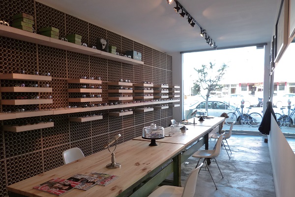 融合墨西哥本店與加州極簡派藝術,洛杉磯Dr. York 嶄新的形象更具特色。地處繁忙商業區,Dr. York選擇大片玻璃門面展現由街道延伸進店內的一體感視覺。走進店內第一眼可看到中央位置的長型木質長桌,這是José Castellanos 從祖父倉庫搬來重新鑄造的,另一旁牆壁則布滿回收的管狀硬紙版與陳列眼鏡的纖維板,活動式結構可輕易變換展示板位置,加上隨處可見的畫與書本,營造出這個仿佛藝廊的公共空間,呈現愜意而舒適的氛圍。