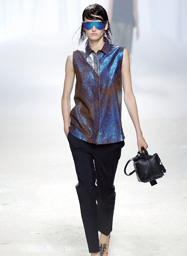 近幾季大受歡迎的反光鏡面依然熱門,在落葉紛紛的秋日帶上閃著一絲電光的藍調墨鏡,踏出最自信的高調步伐。