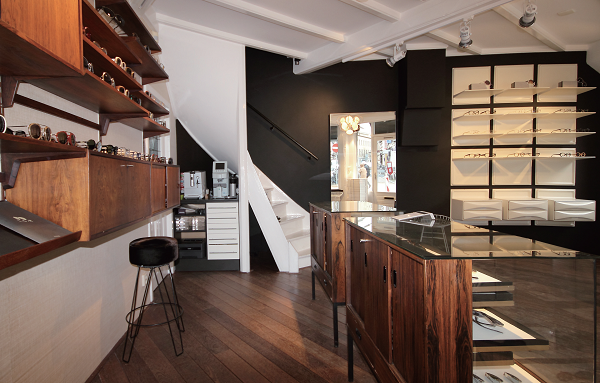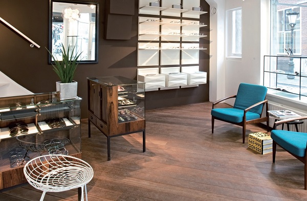 Hall of Frame店址選在烏特勒支市中心一棟19世紀的古老建築中,裝潢因延續此建築風格而帶有復古雅緻的氣息,踏入Hall of Frame 所看到的不會是一般眼鏡店的制式裝潢,其別緻的室內設計不假任何設計公司之手,由Etienne Frederiks與 Jolanda Reinink一同規劃,以迷人的天然木質色為主色調,眼光所及的沙發、櫥櫃與展示架等復古家具都是兩人親自從荷蘭各地選購而來的,例如從斯堪地那維亞半島找到的六十年代椅子,以及從一間珠寶店購得的兩張展示桌。
