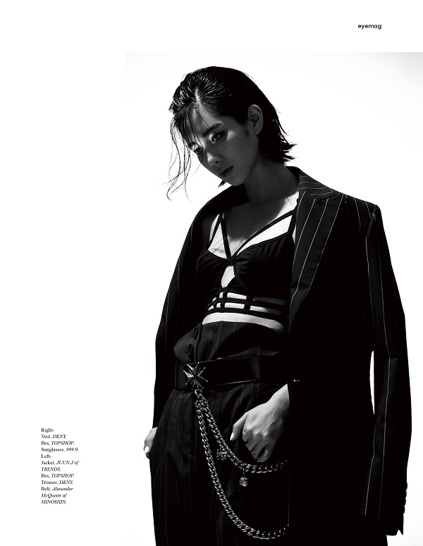 這次造型團隊特別替喜歡挑戰各種不同角色的她,準備了顛覆過往溫柔氣質形象的服裝。對於這些相對突破的造型,她絲毫沒有露出一點猶豫,反而像個準備參加派對的小女孩,開心地換上衣服。問到她覺得自己的底線在哪時,她笑說:「到目前為止,我真的還不知道我的底線在哪,大概就是沒有底線吧!」平時較少特別追求性感的她認為,性感其實是一種狀態。對她來說,每個女孩子都有自己本身性感的樣子。所謂性感的樣子是無關乎長相與穿著的。「像我自己就很喜歡貼著胸貼就出門,因為女生穿胸罩比較容易胸悶,貼胸貼的話就舒服很多。我有一些朋友也認為貼胸貼出門是一件很性感的事。」