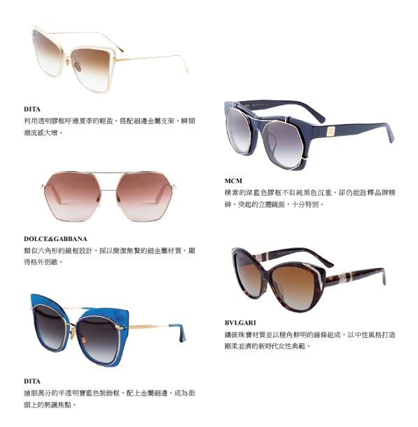 強調個人化性格的尖銳線條,為臉上妝點獨一無二的專屬特色,利用金屬與膠框作混搭設計,簡單中又能展現恰到好處的型格典範。