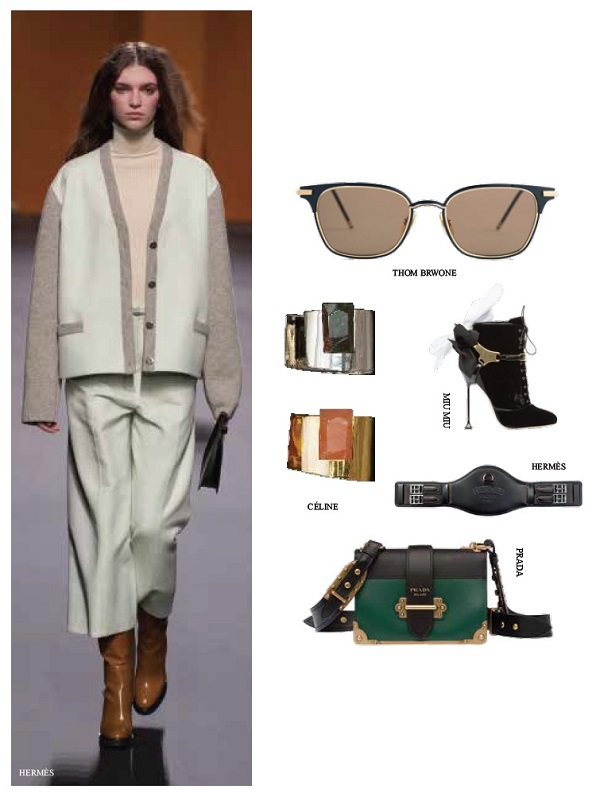 將剛與柔完美融匯,是時尚設計師們的拿手絕活,讓女性不再只有柔美的一面,把剛強元素加入,反而能碰撞出無可取代的獨有魅力。HERMÈS 以寬鬆的線條比例打造本季服飾,運用和諧的剪裁手法,展現了女性樸質而成熟的柔美姿態,將材質本身完美無暇的原始面貌以一種自然的狀態呈現。MIU MIU 則主打詮釋貴族生活中的感性與黑暗面,本季鞋款系列以大量的螺紋緞帶蝴蝶結細節來打造,如繫帶高跟踝靴的鞋面或後方以大尺寸蝴蝶結加以裝飾,展現強烈個人特色的單品。CÉLINE 一向擅於使用大塊金屬與寶石結合,粗獷之中卻又能與女性本身的柔美相襯,格外引人注目。