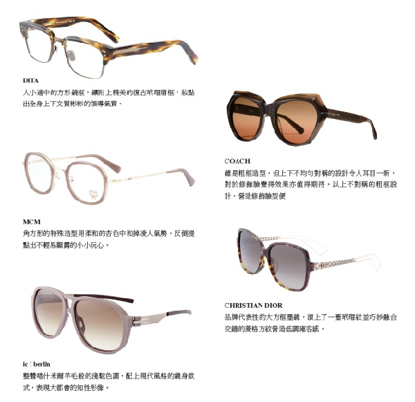 別人口中的「個性」只是參考,事實上每個人都具有無限樣貌,昨天或許調皮活潑貪玩一點,睡一覺醒來又開始想念性格裡的冷豔,那麼就用各種不同風格的眼鏡來開啟轉換開關,隨時隨地完成當下獨一無二的自我STYLE。
