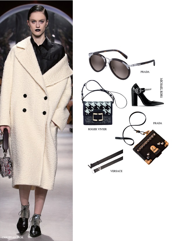 黑與白,最簡單的無色彩,反倒能打敗千萬種色彩繽紛,化身為孤高冷豔的形體展現剛固堅毅之美,呼應寒峻冷酷的冬日印象。CHRISTIAN DIOR 新設計師上任後的首部作品系列獻給2016 秋冬,向以往DIOR 精神致敬的濃厚氣味漫布其中,像是突出的立體剪裁與優雅高貴的極簡主義,以及男裝剪裁的技法融入,採用黑白對比營造出心目中新世代女性的理想形象,乘載著滿滿的力量,無比堅強。類似的理念同樣可在VERSACE 本季作品中看到,活躍且富有自主性的女性穿上率性風的華美服飾,鋸齒狀的刺繡圖騰、閃爍鑽石光輝的黑色羊毛衫,繫上金屬V 形釦環的皮腰帶,打扮出一身帥氣風尚。