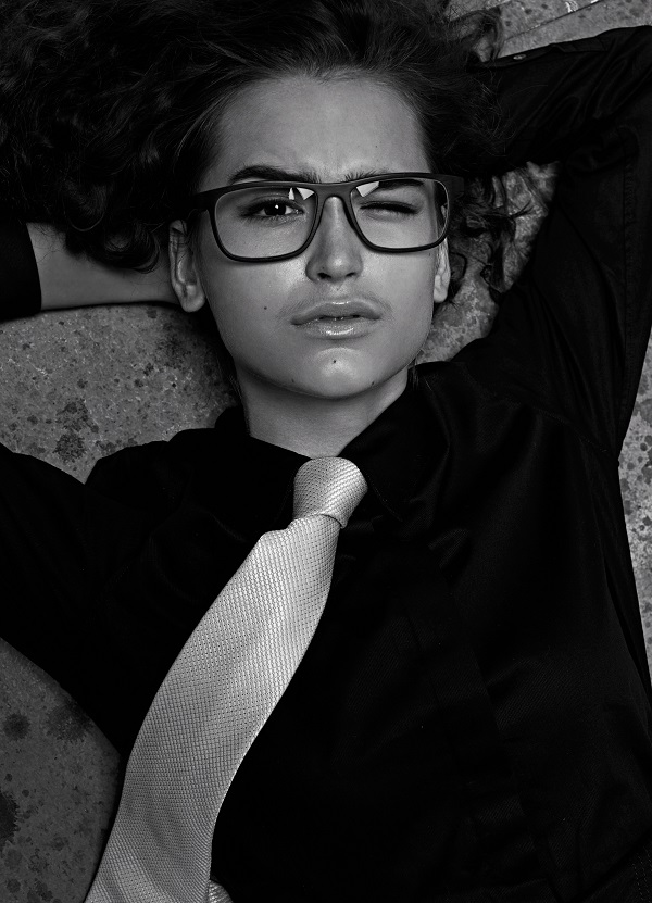 Shirt ,3.1 Phillip Lim. Necktie ,Stylist’s own. Glasses ,Rolf by 2020EYEhaus