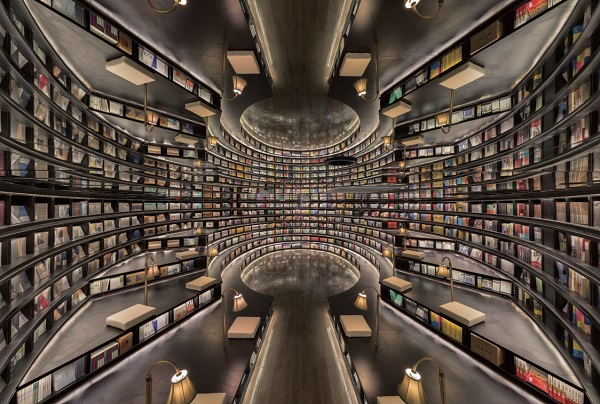 位於中國杭州濱江區,毗鄰錢塘江,鍾書閣座落在繁華的都市水泥叢林間。佔地300 坪,印滿文字的落地窗吸引了人群駐足,東張西望間,便被吸進一個超現實的世界。一個書店可以有什麼樣的繆思,無論是愛好閱讀或純粹愛書的人,都可以有截然不同的想像;而在鍾書閣,設計師李想便一口氣讓想像徜徉。