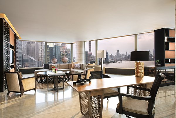 榕樹,始終無私地用其碩大的枝幹樹葉庇蔭著人們,讓來者獲得身心靈的沉澱與修護,取名自此的悅榕集團,旨在提供繁忙現代人們得以靜謐休憩與放鬆之處,包含渡假村、飯店與SPA 等等,如今已遍布全球二十八個國家。位於浦江沿岸的上海外灘悅榕庄,便是旗下一間都市中的綠洲所在。由於地處相對安靜的北外灘地區,反倒是觀賞上海外灘風情的絕佳地點,以旁觀角度將一切上海繁華盡收眼底,隔江相望陸家嘴金融貿易區的摩天大廈、以及歷史古蹟的萬國建築群,而飯店頂樓的露天酒吧,更是夜晚欣賞璀璨燈火夜色、渡輪,遠離塵囂的遁世之處。飯店內的裝潢陳設現代簡約,特別是建築物的正面全然以玻璃及大塊玻璃嵌版構成,燈光效果下顯得氣派又時尚。此外不時融入的中國風元素,除了東方圖騰的表現外,如大廳可見的水、竹、石,將禪寂的意境氛圍,以及大量金黃木材的使用,都將這個老上海的歷史意象傳承保存。