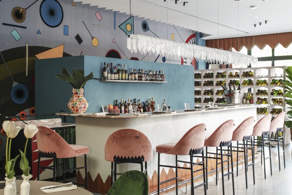 材質會說故事,表現情感風格,也能穿越時間、儲存記憶。位於市區的Kaléo,室內的圖騰與風格,靈感取自當地聖喬治主教教堂(Byblos),甫一踏進室內,繽紛富童趣的牆面,溢滿溫暖的海邊城市氣息。Moooi 的「Dreamstatic 系列」地毯正是David/Nicolas 於2016和Moooi 合作設計的作品,地毯的設計如名稱所述,是關於夢的解譯,各式幾何與趣味細節夾雜,亂中有序但不模糊,正如同沒有人能清楚解釋夢裡每個細節,卻總能記得零碎的片段,且每個片段都栩栩如生。這幅充滿鮮豔色彩和寓意的地毯,就掛在Kaléo 正對門口的第一堵牆面,將每個步入咖啡館的旅人,帶入一場繽紛溫暖的夢境。