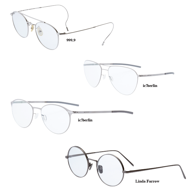 2018 秋季眼鏡趨勢來到了銀色金屬風格,不走前衛的太空未來感,反倒是透過光澤的冷調呈現現代幹練的俐落感,線條流暢細膩順貼臉形與耳後,簡單的體樣貌卻是恰好拿捏的精準,多一分略嫌冗贅,少一分容易顯得單薄。除了水滴型、橢圓框等款式之外,通常復古懷舊、採用金色、寬膠框等元素與之相配的大圓鏡框,這一季卻也罕見地以銀色細框做為表現,詮釋出當代特性的另一面向;而薄鋼與純鈦等材質製成的鏡框大幅降低了眼鏡重量,給予佩戴時的無感清爽體驗。