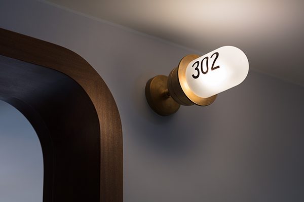 於是,無論是The Fleming 公用空間或客房,每一處裝置與物件都能見到碼頭及船艙等渡輪意象的巧妙置入,透過木頭與黃銅材質渲染濃厚的復古情致,同時採用酒瓶綠、海軍藍和酒紅色為主色調交織其中,從漆成紅色的電梯、木製接待櫃檯,到靈感取自船客手提木箱的竹編屏風及櫥櫃、仿造渡輪窗口的圓鏡、宛如艙門的圓弧形房門,再到海軍條紋織品、黃銅燈具、指針造型的服務鈴、潮蟹裝飾品⋯等細節,每個角落都是讓人驚喜的細緻安排。