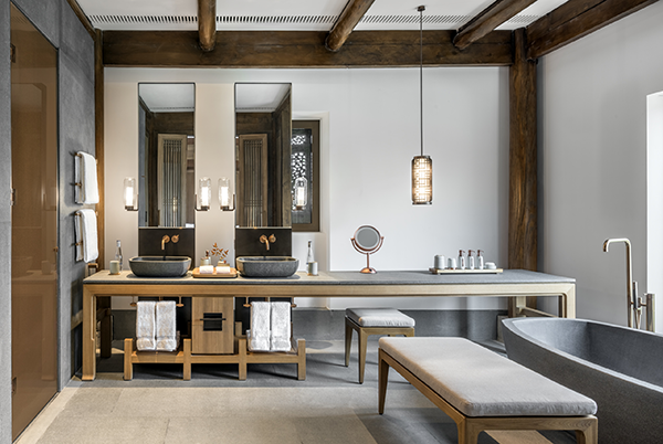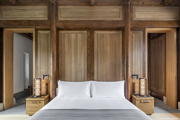 多達43 萬平方米的用地面積,讓養雲安縵成為安縵集團中佔地最大的飯店,整座園區被樟樹與湖泊環繞,悉心開闢出一處修身養性的的隱居之所,並交由安縵御用建築設計師 Kerry Hill 操刀設計,擅用他一貫極簡的設計手法,將古建築的獨有韻味融入低調奢華的現代居住體驗中,為養雲安縵規劃出13 棟古宅院落及24 間標準套房,前者為由古磚牆圍起的四臥別墅,皆配有私人庭院、寬敞起居室與用餐區、戶外泳池與露天按摩浴缸;後者則與前廳、餐飲、SPA 共四部分組成主體建築。室內軟裝同樣致力於古與新的和諧融一,風格清雅雋永,並選用木頭、石材與竹子等大量天然材質,與養雲安縵樹宅相守的景緻相互呼應。