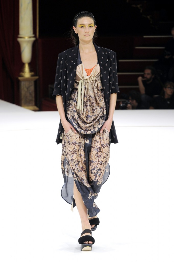 PRADA配合春夏多元摩登主題,條紋圖騰與高彩度色彩最為搶眼,同時以編織手法創造民族風,而粗跟設計讓高聳的女鞋站穩了腳步點,除此還將牛津鞋加高,有人戲稱這是時尚變裝款的增高鞋,矽膠墊與麻繩滾邊,與男鞋設計如初一轍。2月中才在台北中山北路開幕旗艦店,金馬新科影帝阮經天便是穿該類鞋款出席活動,被媒體戲稱增高鞋,想必女孩穿起來也有等同效果吧。除了PRADA,CHANEL、FENDI也是走厚底風,不管是高跟或平底,一律先加厚再說。厚底鞋就是過去曾風靡一時的矮子樂,它是體型嬌小者的福音,今年春夏又繞回「恨天高」風潮,有復古意味。KENZO將木屐帶上伸展台,MARC JACOBS踩著厚底,鞋面則以裹繞、花卉、羽毛為造型裝飾,引領走入80年代YSL氛圍。但是恨天高也是要看人穿,搭配錯誤,還真像鄰居阿姨頭夾著鯊魚夾,穿木底厚底鞋、上頭秀個大花,露出塗滿紅色指甲油的腳指頭,喀啦喀啦出來串門子。好比DOLCE & GABBANA的蕾絲、豹紋以及金屬元素,是女人朝思暮想的浪漫表現,穿不好,真的像村姑。高歸高,平底也是流行之一。據說LANVIN春夏開秀前,Alber Elbaz為模特兒臨時更換鞋子,超平底服貼涼鞋,讓大家安穩飄逸地走秀,就怕模特兒習慣踩高蹻,平底的反而走的扭捏,成了名符其實的女神「卡卡」。FERRAGAMO部分鞋款也有平底系列,BALENCIAGA更有麵包鞋與娃娃鞋的mix版,就為了走的更順暢舒適。