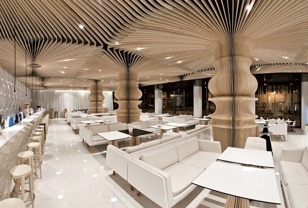 Peter Altenberg有一句名言:「如果我不在家,就是在咖啡館;如果不是在咖啡館,就是在往咖啡館的路上。」贏得最佳酒吧獎項的得主,是設於保加利亞Graffit Gallery Hotel的GRAFFIT CAFÉ。走進咖啡廳,最先映入眼簾的就是從天花板一路延伸至空間主要梁柱的木結構線條,以精湛的紙雕表現優雅線條。空間邊上的大落地窗,借入窗外的綠蔭與街景,技巧地融合自然與人文兩種元素。