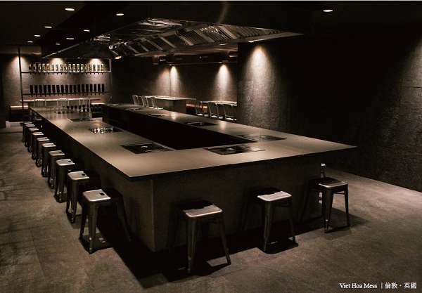 而以「年度獨立餐廳」獲獎的Viet Hoa Mess是家位於倫敦講求健康與環保取向的餐廳。VONSUNG設計工作室以簡單、雅緻的主軸統合一樓Café與地下室的Mess兩種不同型態的餐飲空間,以三個五米平方大小的石座將空間作區隔。位於一樓的咖啡廳以灰褐色的調性,佐以銀色的金屬椅與筒狀光柱,表現簡約的都市當代氛圍。轉角下樓,灰褐色的沉穩調性仍持續延伸,但富劇場效果般的中央燒烤台,彷彿對每位造訪的來客遞出邀請之手,希望訪客能盡興地享受當下精心條配的餐點。而位於地下室的Mess燒烤餐廳藉由石牆、麥迪亞石桌、臘石地板與鋁椅等不同媒材相互搭配,創造出宛如在地下洞穴飲食般的感官經驗。